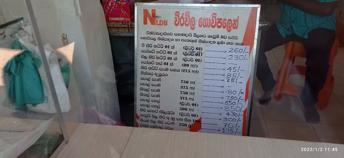 NLDB Weerawila Farm Shop Menu